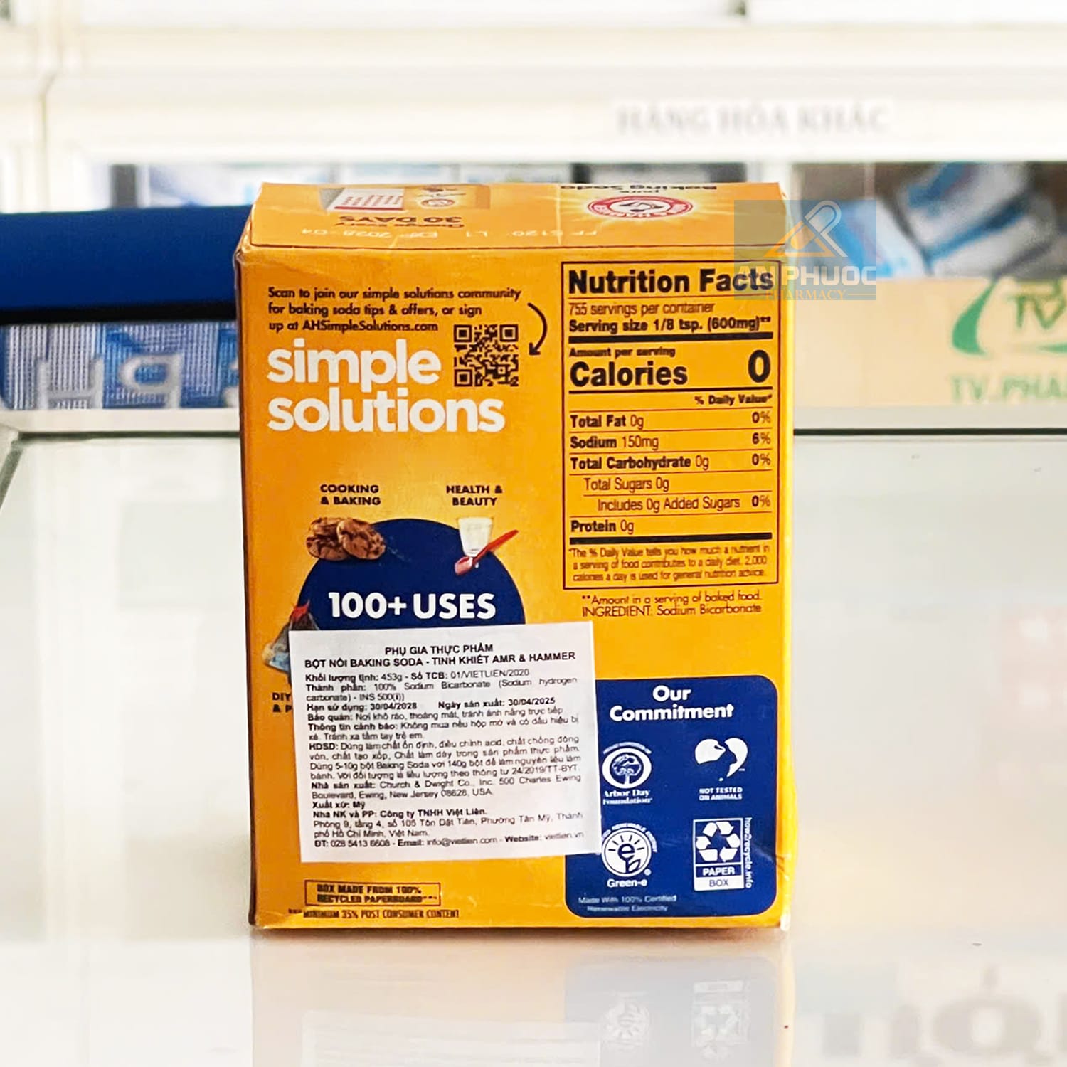 Bột Nổi Tinh Khiết Baking Soda® | Arm & Hammer |【Hộp 453g】Tên Sản Phẩm- Bột Nổi Tinh Khiết Baking Soda® | Arm & Hammer |【Hộp 453g】 Thành phần - Sodium Bicarbonate 100% ( sodium hydrogen carbonate ) INS 500 (ii) Công Dụng - Làm Bánh: Là chất tạo khí, giúp bánh nở xốp, mềm hơn. Hướng dẫn sử dụng - Dùng 5 - 10g bột Baking Soda với 140g bột để làm nguyên liệu làm bánh. Đối tượng sử dụng - Bột Baking Soda Arm & Hammer dùng được cho đối tượng theo thông tư 24/2019/TT-BYT. Lưu Ý: - Khi mua nên kiểm tra nguồn gốc (thường là Mỹ) và hạn sử dụng (Date). |