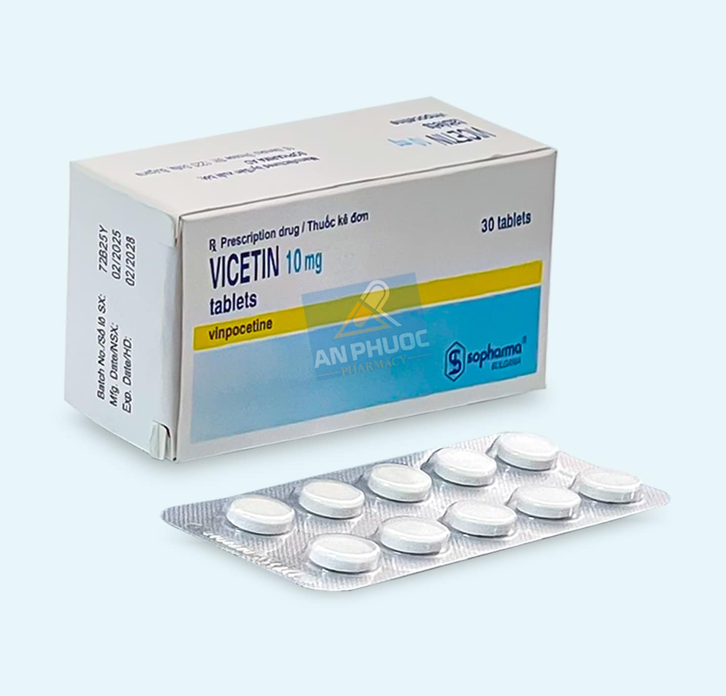 | THUỐC BÁN THEO ĐƠN | Thuốc Vicetin® 10mg | Vinpocetine |【Hộp 30 viên】điều trị các dạng khác nhau của rối loạn tuần hoàn máu não: Tình trạng sau đột quỵ, sa sút trí tuệ có nguyên nhân mạch, vữa xơ động mạch não, bệnh não sau chấn thương và do tăng huyết áp, thoái hóa hệ sống nền |